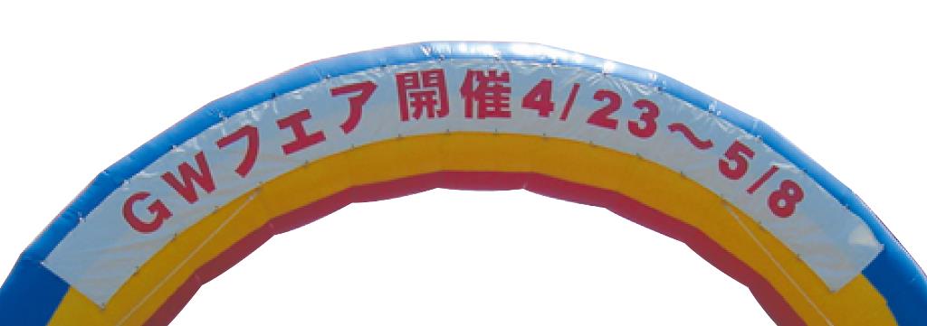 エアーアーチ カッティング文字イベント名がアーチに入ると来場者にどんなイベントか分かりやすく、認知度アップに役立ちます。